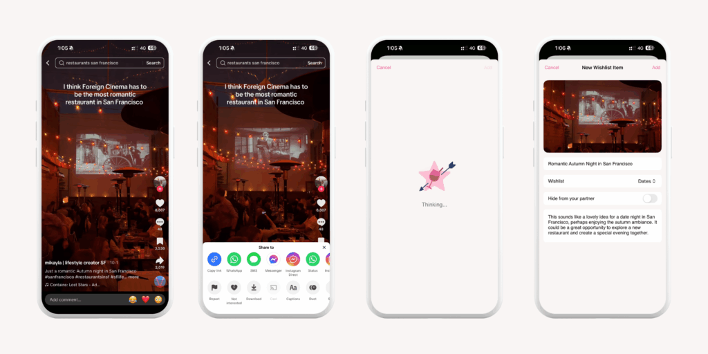 The best part? If you find your inspiration on Tik Tok, Instagram or the Web simply tap ‘share’ with Cupla and we’ll do some magic to pull all the key details into the Wishlist. Then, we’ll let your partner know what you’ve added. Honestly, we don’t mean to gloat, but it’s amazing!